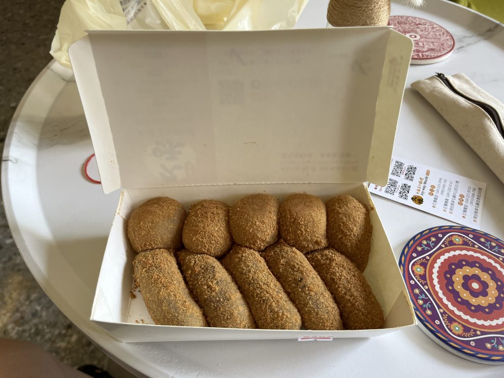 返回宿舍後,我迫不急待開封各吃一個。花生米口味口感非常獨特,且超好吃,大概是因為裡面包有花生顆粒內餡。長招牌(長條型麻糬)裡面有紅豆泥、芝麻、花生等,甜度適中,味道佳。